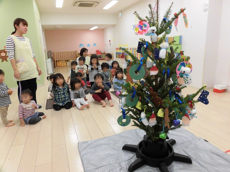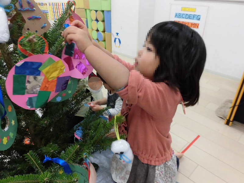 今週は子天使ちゃん達が、せっせと作りためたクリスマスツリーの飾り(オーナメント)の飾りつけをしました(^-^)。