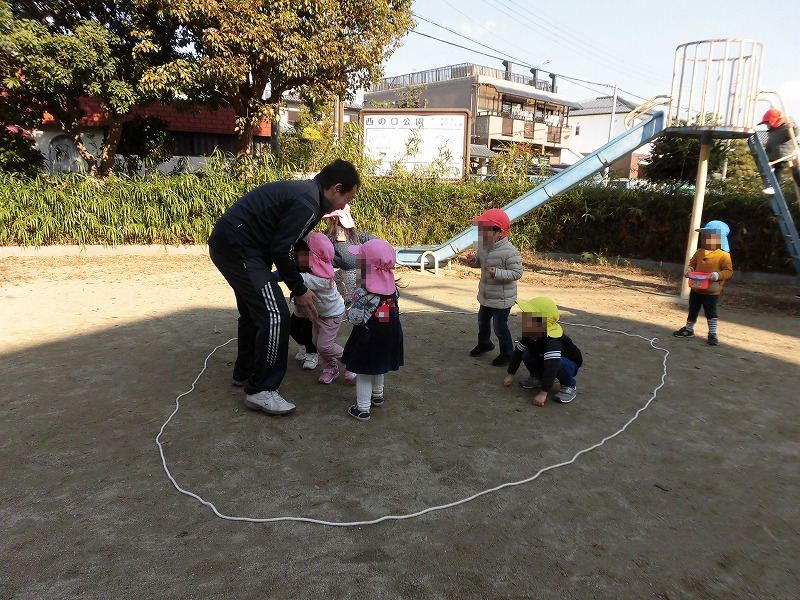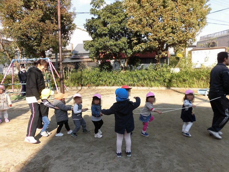 冬場は走り回ったり、全身を使って遊ぶ遊びが「おもしろーい!」「オオカミごっこ」「しっぽとりゲーム」「むっくり熊さん」「お相撲さん」「電車ごっこ」などなど(^-^)。お外から帰ってきた園長はいつも息切れゼーゼー(笑)54才の体力は子天使ちゃん達には負けちゃいます(汗)