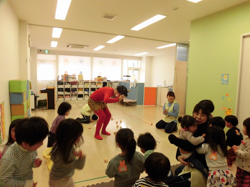お次は豆を園内に投げ入れます「福は〜うち!」(^-^)。
