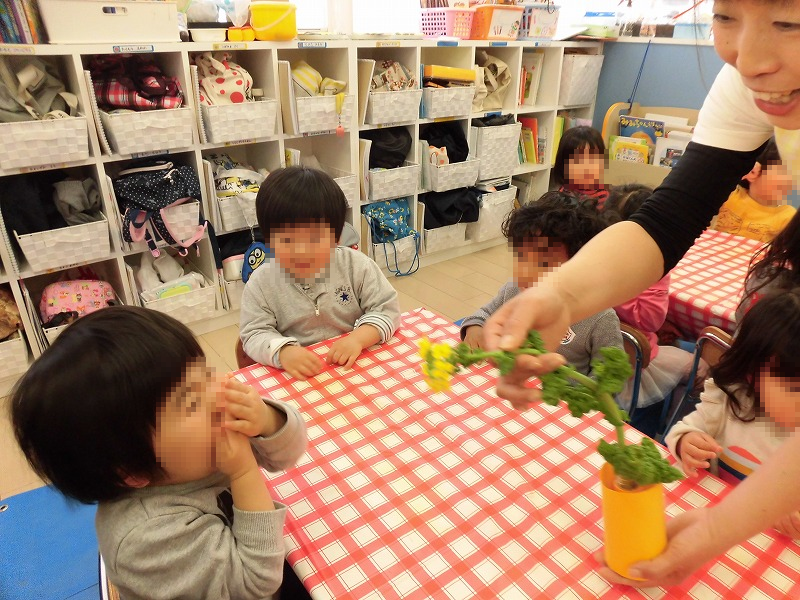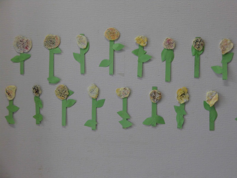 今週はポカポカ陽気の日が何日かあり春の訪れを感じさせられた週になりました(^-^)。春と言えば菜の花です。今週の工作の時間は「菜の花」制作をしました(^-^)。