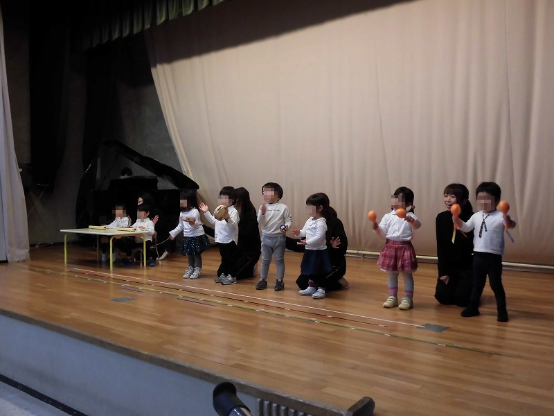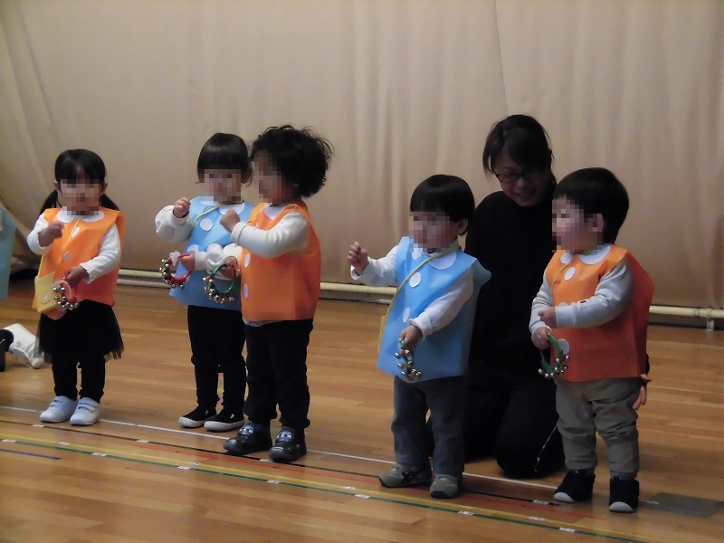 スタートは赤組(2才児)さんの合奏「おもちゃのチャチャチャ」(^-^)さすが赤組さん、お見事です!(^0^)
