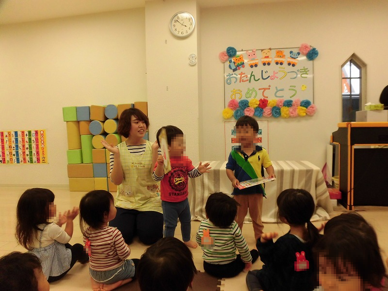 今週はTくん満3才、Kくん満2才のお誕生月会がありました(^-^)。