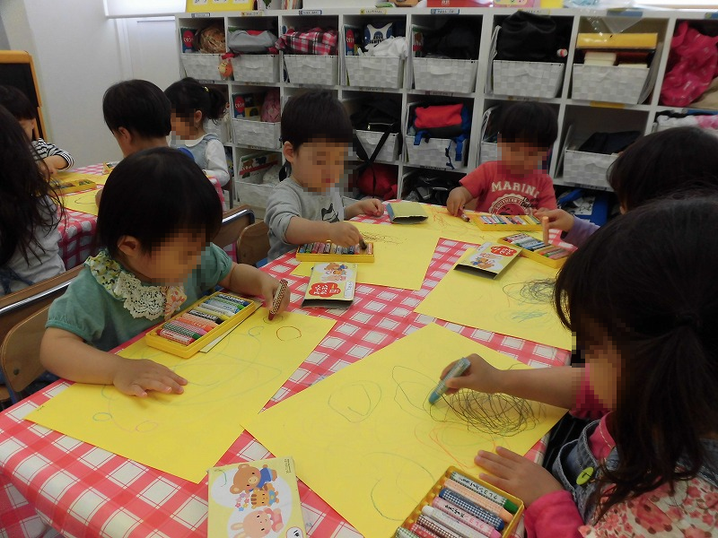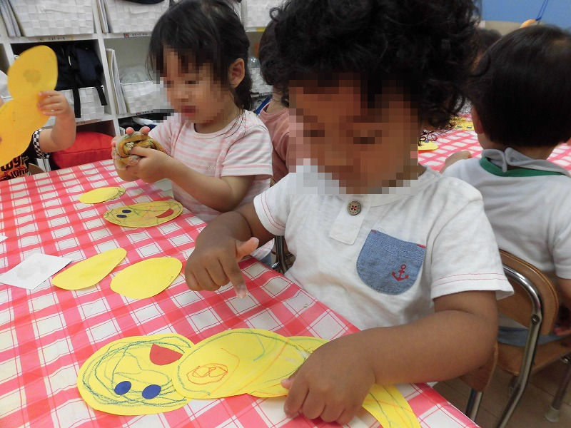 描いたり♪切ったり♪貼ったり♪つなげたり♪みんなスゴイ集中力!さっすがウェリナの子ども達!(^-^)。ハィハィわかっていますよ、親バカならぬ園長バカで結構です(笑)