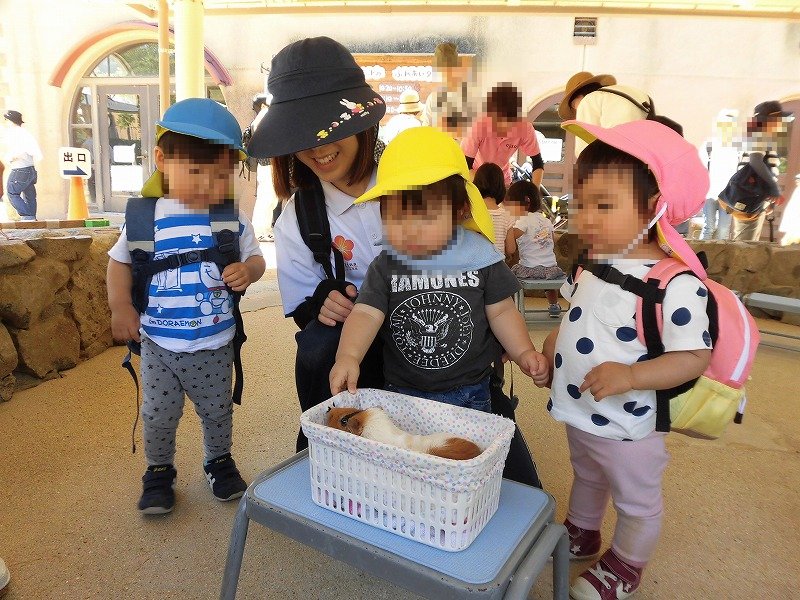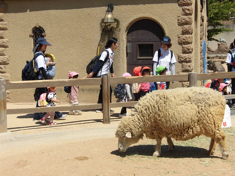 ふれあい広場では、うさぎさんをナデナデしたり(^-^)「可愛いねぇ〜♪」、ひつじさんを間近で見たり(^-^)「フワフワだぁ♪」。