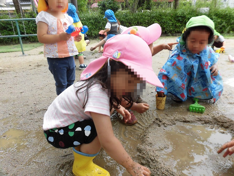 子ども達の「また、泥んこ遊びがしたぁい!」の声に応えて行ないました。