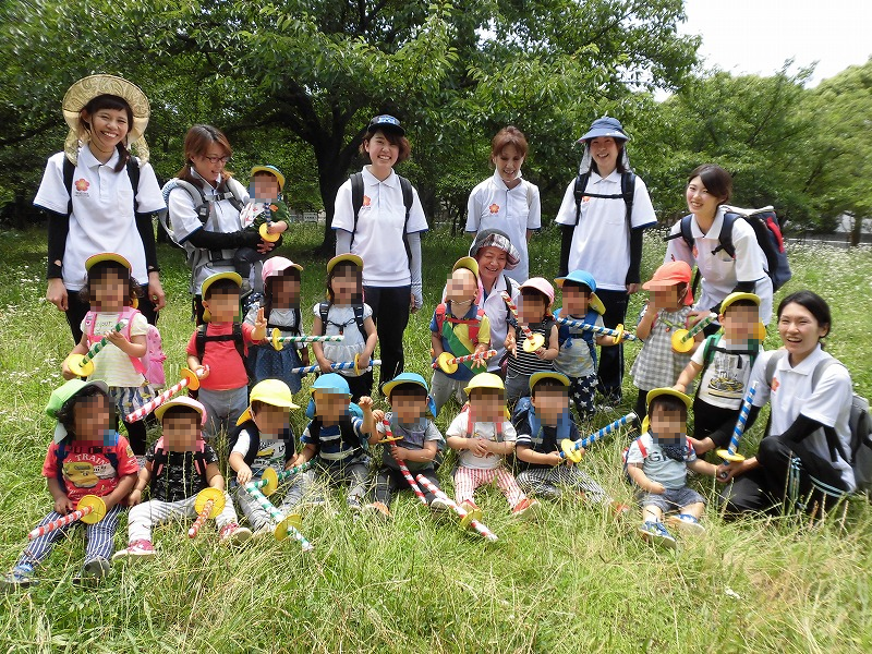 集合写真を撮ったら園に向かって出発〜♪「みんなぁー、今週もよく頑張りました!、明日はゆっくり休んでまた月曜日にね!(^o^)」