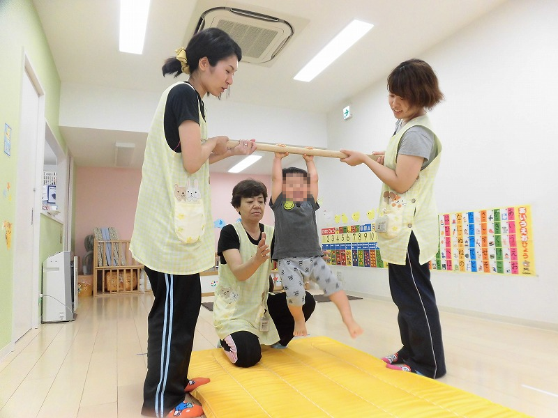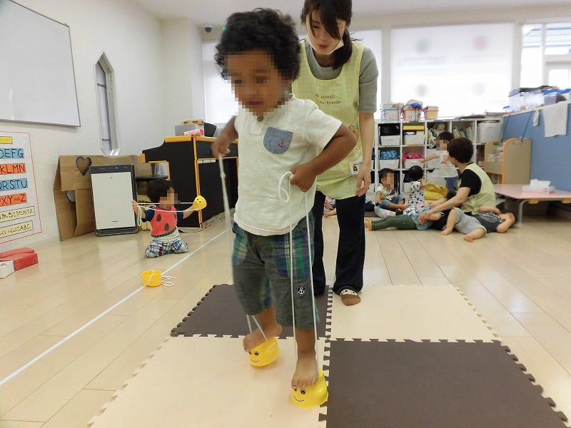 ぶら下がったり、押したり、転がったり、登ったり、ジャンプしたり(^-^)。4月は出来なかったことが出来るようになった子がたくさん(^o^)。この時期の子ども達は日々急速に成長していっています♪