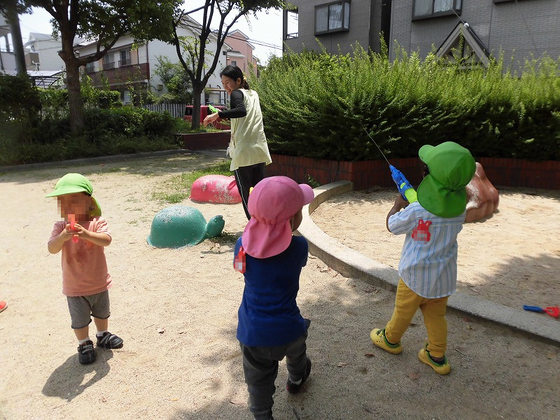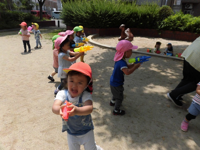下の写真は赤組ブームの水てっぽう(^-^)。水ふうせんの時と同じく集中的に狙われるHM先生(笑)。