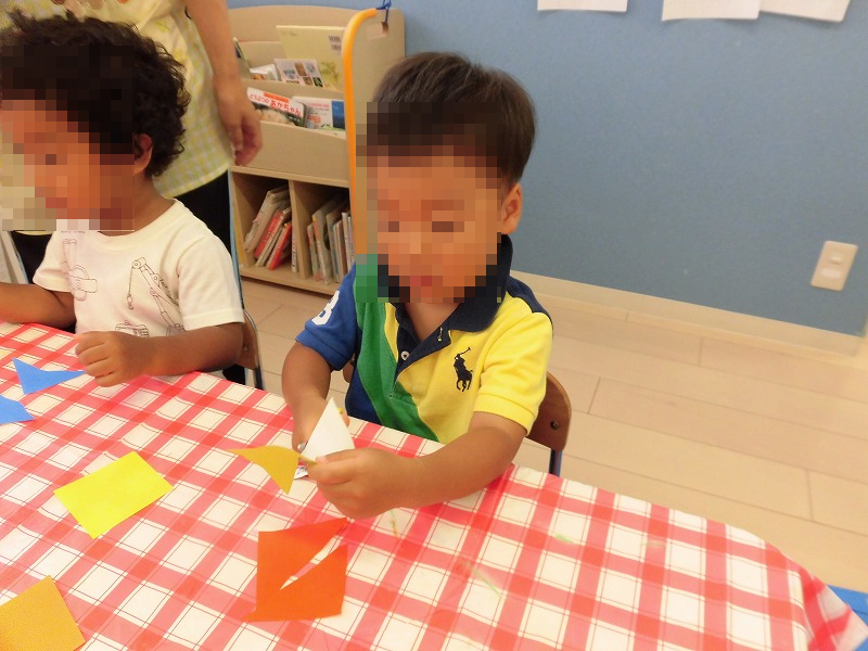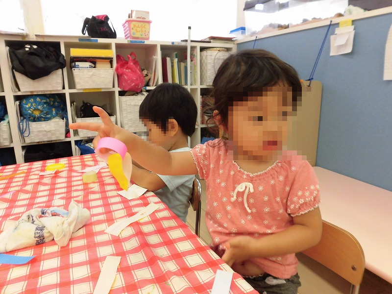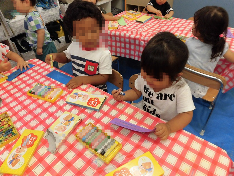 園児たちは切ったり貼ったり描いたり(^-^)笹飾り作り、すごい集中力で頑張りました!