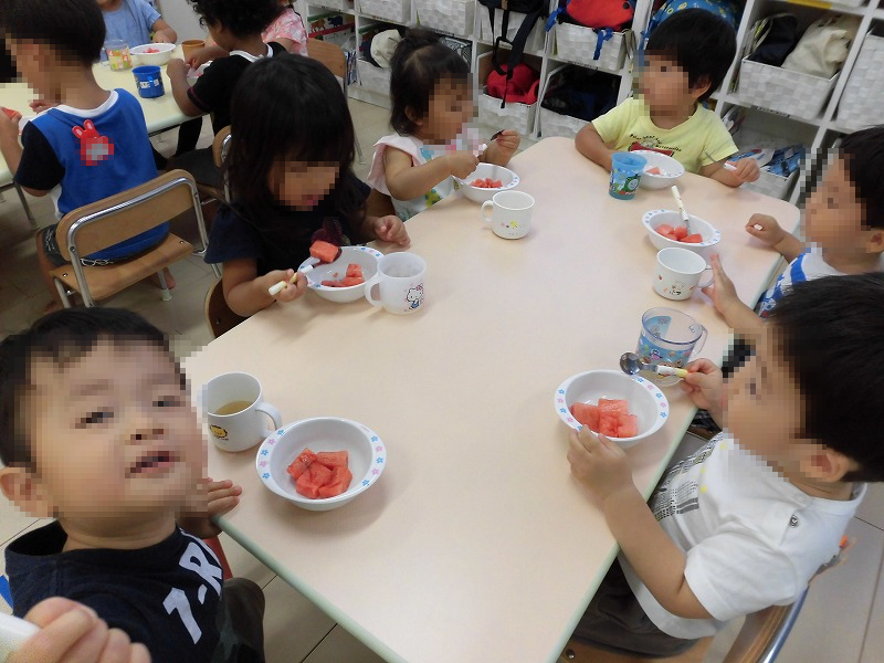 この日のおやつはもちろんスイカ♪美味しいね〜ぇ(^-^)。