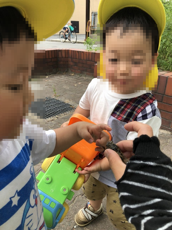 写真は昨日公園で捕まえたセミをツンツンする子(笑)。