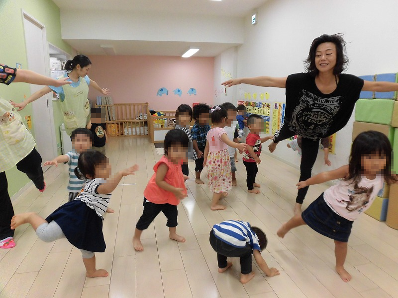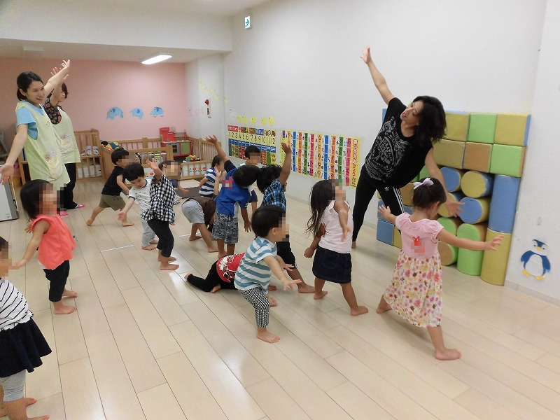 毎週月曜日はダンスPの日。ダンス講師は園長の古い友人、YupダンススクールのY先生です。