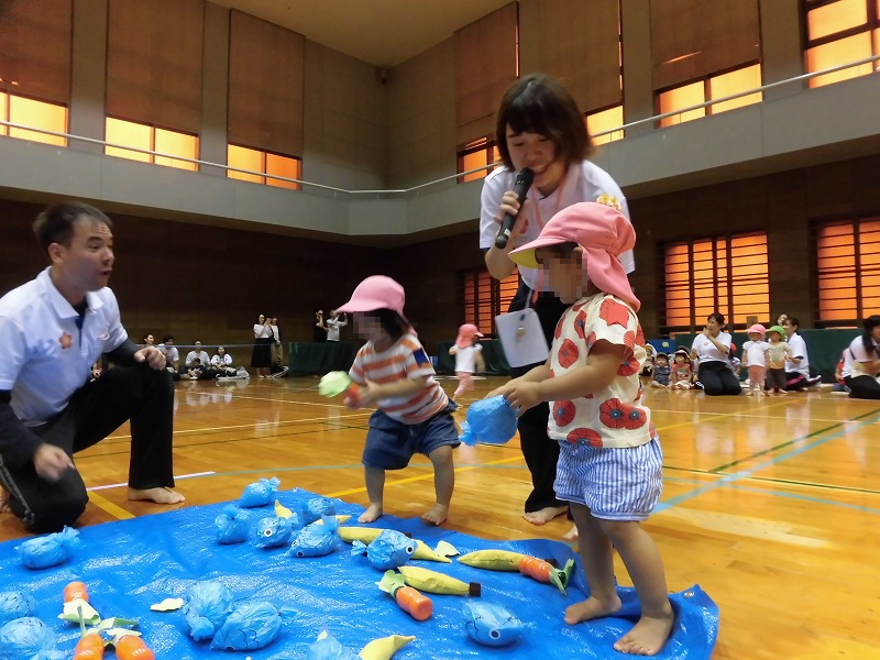 一つ目の競技は「えさやり競争」、みんながんばれぇー♪