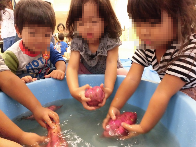 あっ、お芋洗い(土取り)ももちろん園児たちのお仕事でした(^-^)。