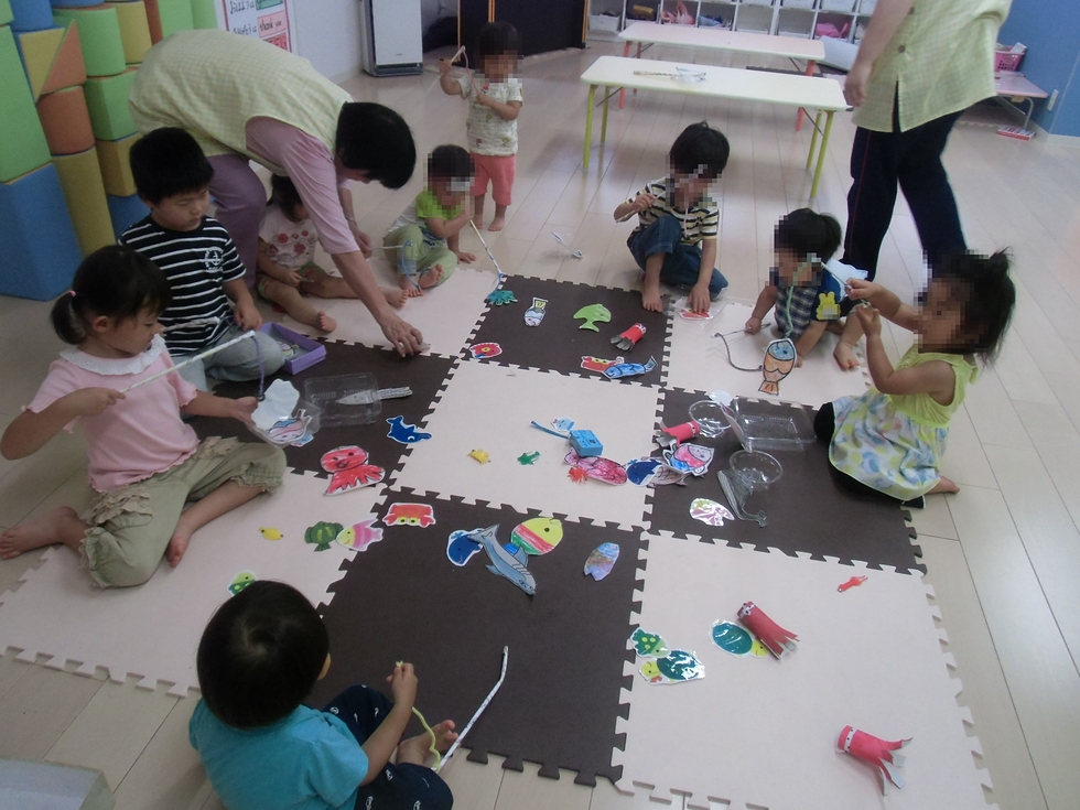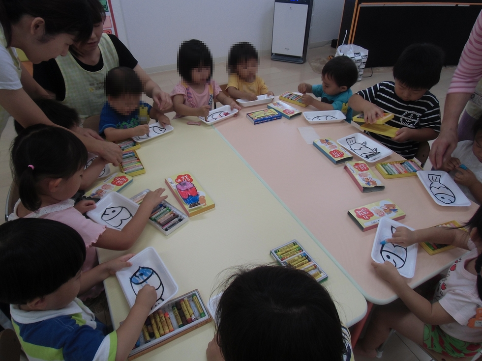 設定保育「魚釣り」の魚の製作に変更です(写真)。