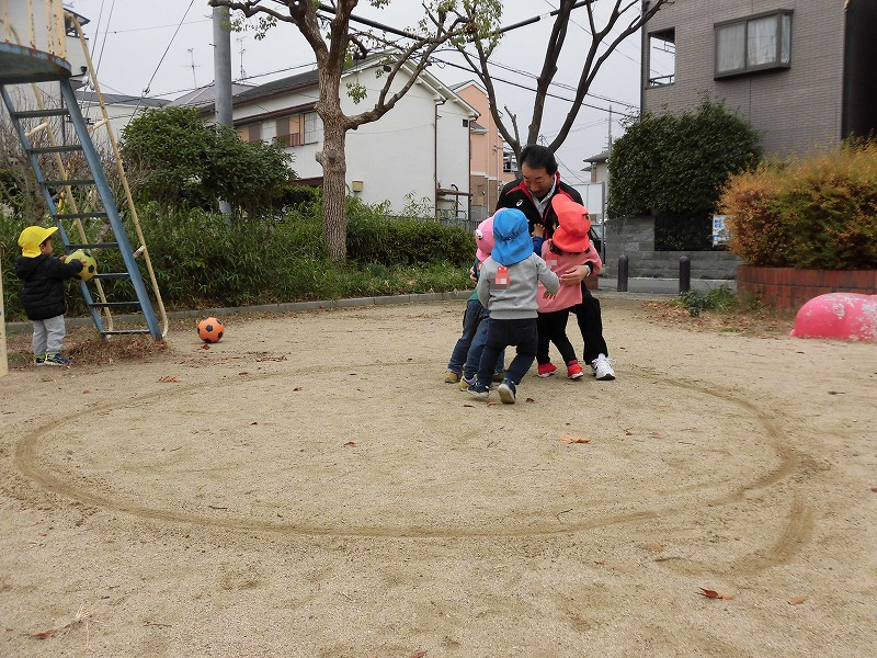 今週は寒い日が続きました。外で走り回って遊ぶ園児たちにはあまり寒さは関係ありません(笑)。
