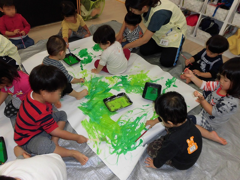 綿をつめたり〜♪、色をぬったり〜♪、ペタペタ貼ったり〜♪保育発表会、楽しみだね!(^o^)
