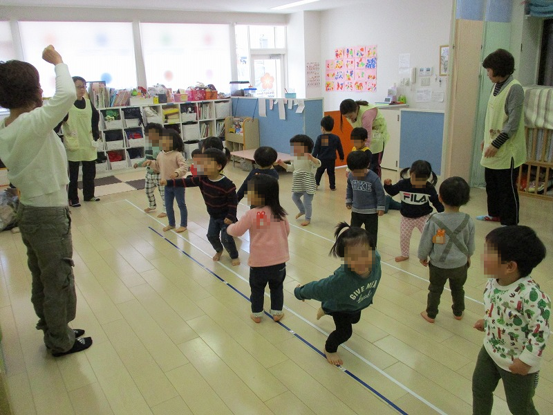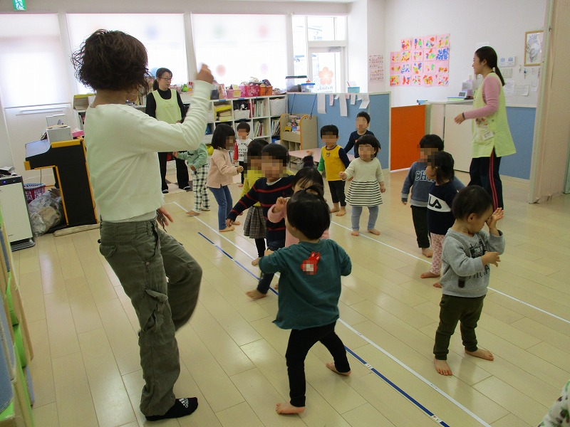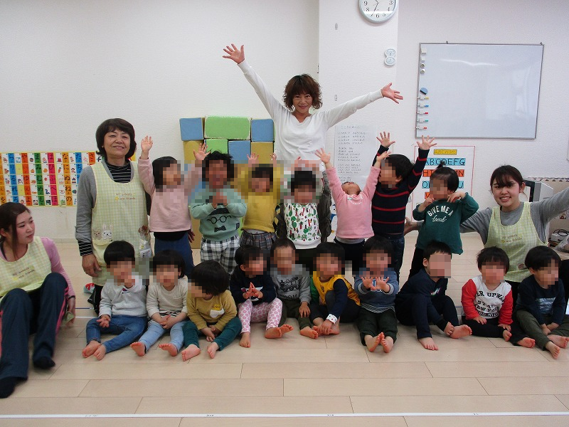 この日も園児たちノリノリで「イえーぃ!」。赤組さんにとっては最後のダンス。満面笑顔のYダンス先生の目に光るものが・・。Y先生、本年度も一年間ありがとうございました!4月からもよろしくお願いします(^o^)。