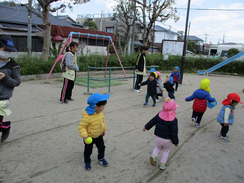 下の写真は市からウェリナの園庭に指定されている園庭指定公園の西ノ口公園(ウェリナでは雨の日以外、毎日お外遊びに出かけます)。園児たち公園でストレス発散です(^o^)。
