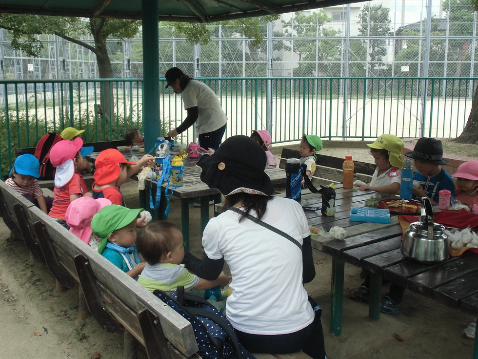 遊んだ後はお弁当タイム、お腹ぺこぺこ、おいしぃーね(^0^)(右下写真)。