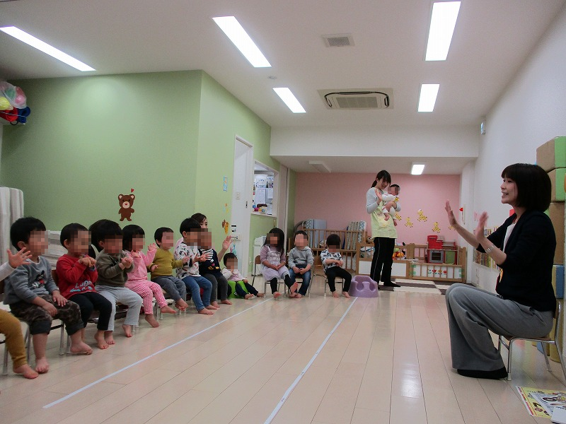 今年度はじめての英会話プログラム、在園児はもとより新入園児も楽しそうに参加していますよ(^-^)♪。