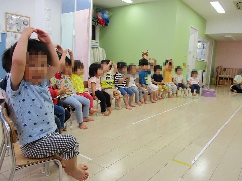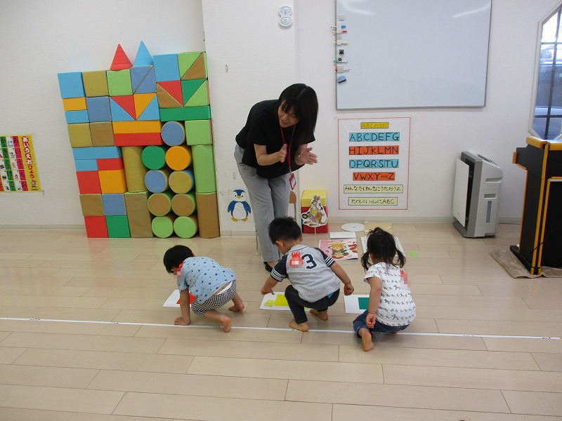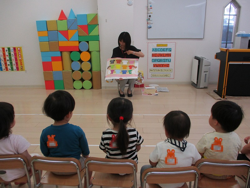毎週水曜日は英会話プログラムの日。ECC幼児英会話の先生とウェリナナーサリースクールのカナダ人ハーフの先生が1週交代で行ないます。