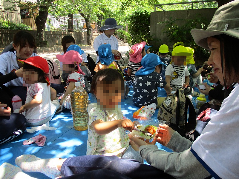 たくさん見て回った後は待望のお弁当タイム!給食士さんが朝6時から頑張って用意してくれました。パクパク、モグモグ、カミカミ、ゴックン♪美味しいね〜。