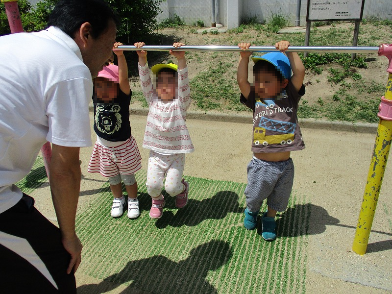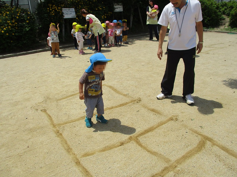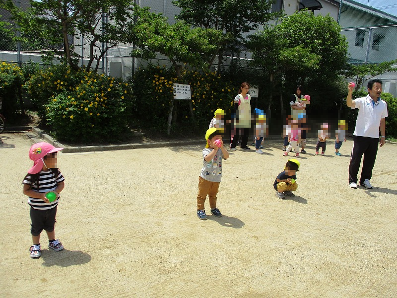 投げたり、跳んだり、走ったり、ぶら下がったり♪みんな一生懸命に挑戦します(^o^)。
