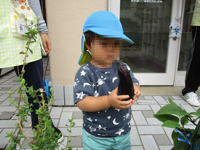 今年はトマトもナスも豊作です。今週は2度目の収穫♪。収穫したトマトとナスは給食のトマト茄子カレーに(^-^)。