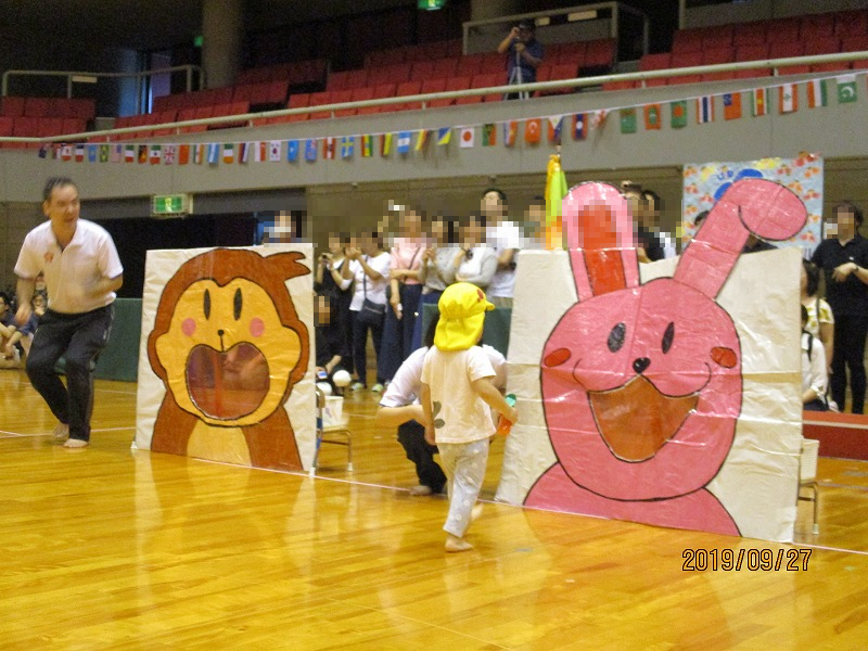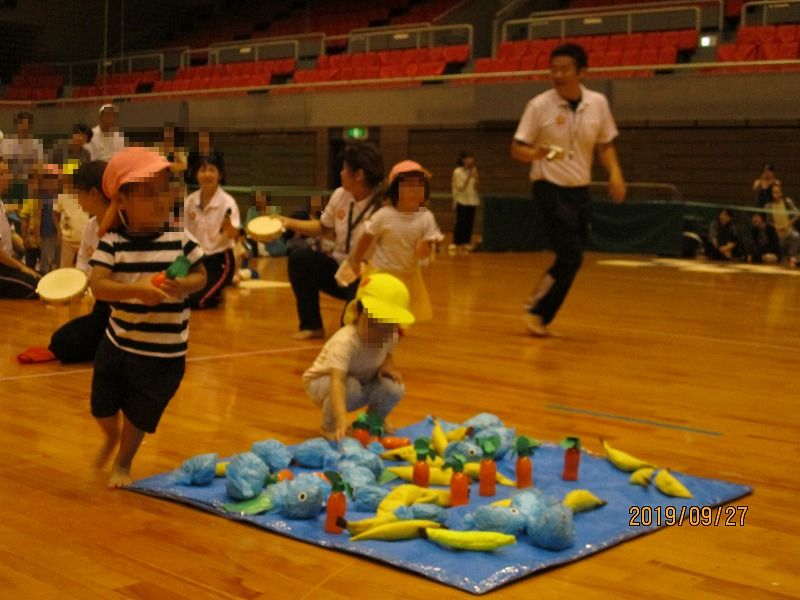 全体体操の後は「エサやりリレー」「徒競走」「障害物競争」です♪