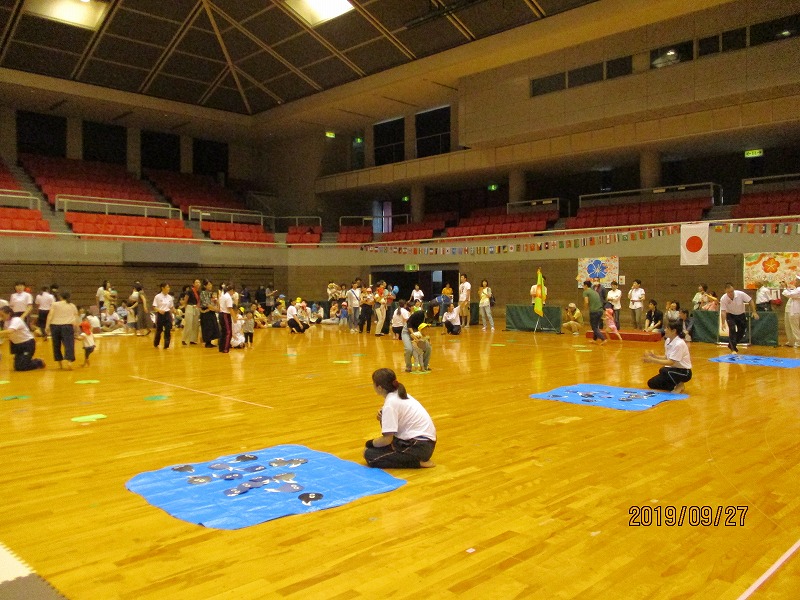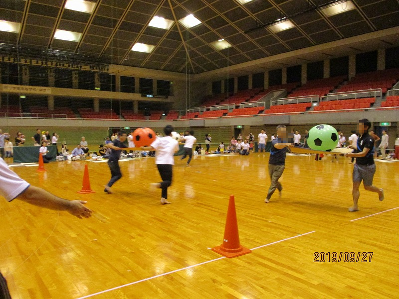 親子競技の「ピョンピョン」。保護者競技の「大玉運び」「綱引き」。保護者の皆さんにもご協力いただき大いに盛り上がりました。