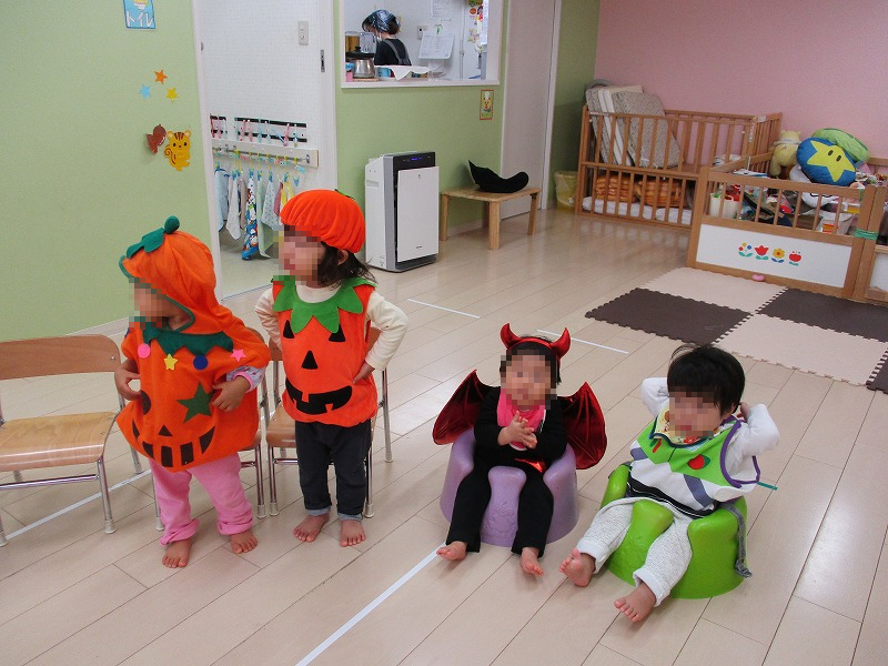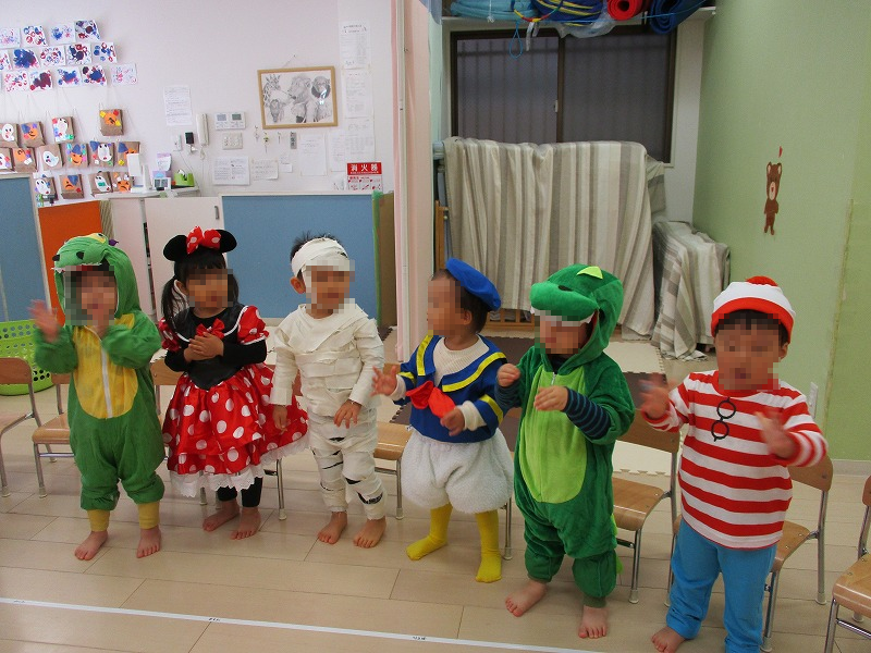 今日は可愛い衣装の子供たちが嬉しそうに、照れくさそうに(笑)登園してきてくれました(^-^)。