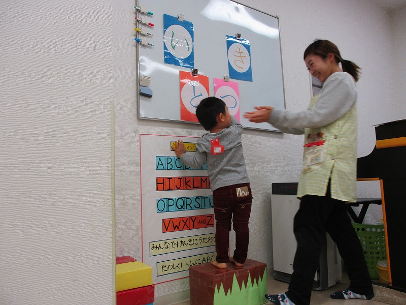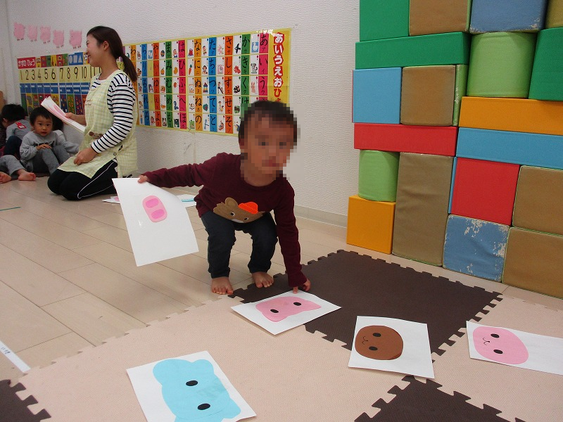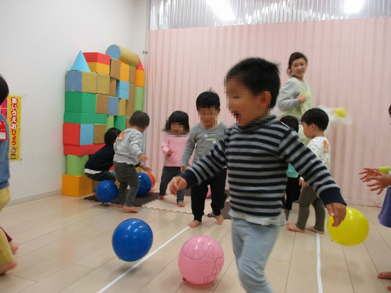 写真は特別プログラム「文字遊び」の一場面。下の写真は設定保育「誰のお鼻?」と「風船遊び」。子どもたちには寒さなんかなんのその、今週もたくさん遊んでたくさん知ることが出来ました♪
