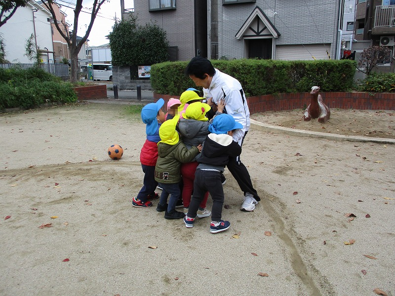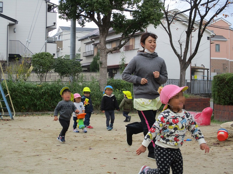 ウェリナでは雨の日以外毎日お外遊びに出かけます。今週は寒い日が続きました。子どもたちは思いっきり体を動かし遊びます(^^)。