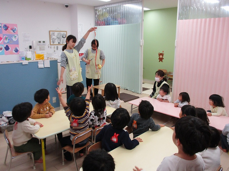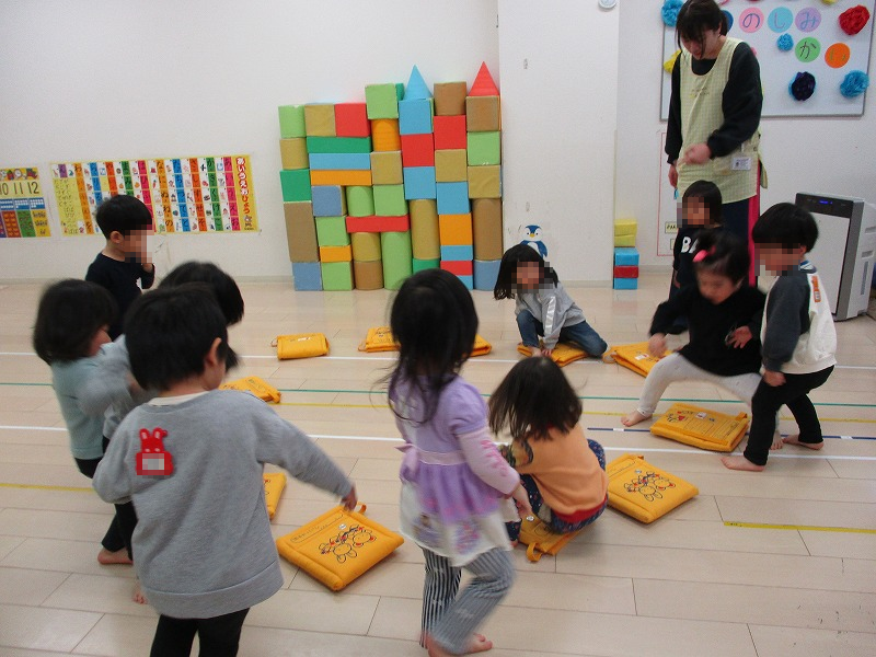 満2才以上の子供たちの大好きな「座布団取りゲーム」、クリスマス会でやってから子供たちハマっています(笑)。