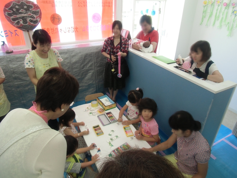 左下写真は「ぱっちんバッタ作り」です。おじい様おばあ様、お父様お母様が見てますよ、がんばれー(^0^)。