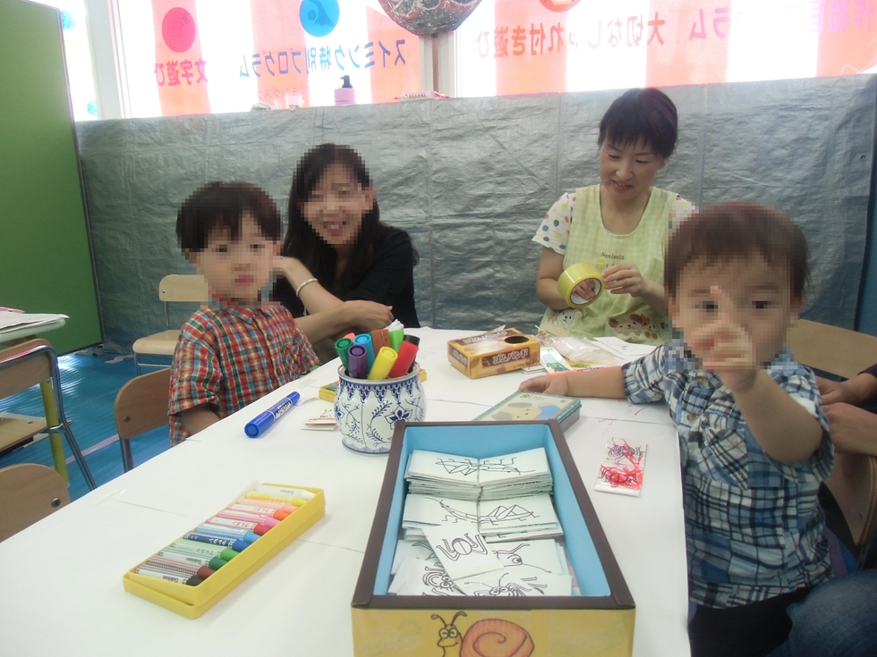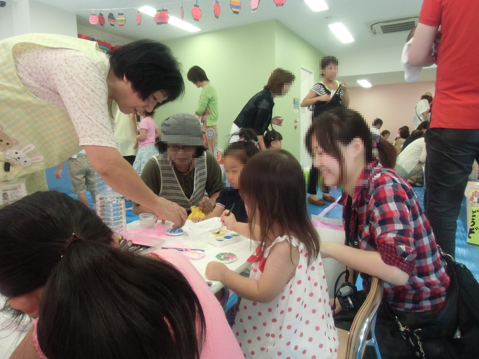写真は大人気の手作りコーナー「ペンダント作り」です。子天使ちゃんは作った手作りペンダントをおじい様おばあ様にプレゼントします。「大好きなジージ、バーバずっと元気でいてね!」(^0^)。