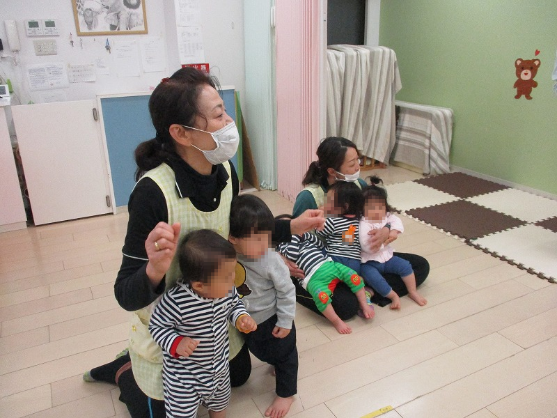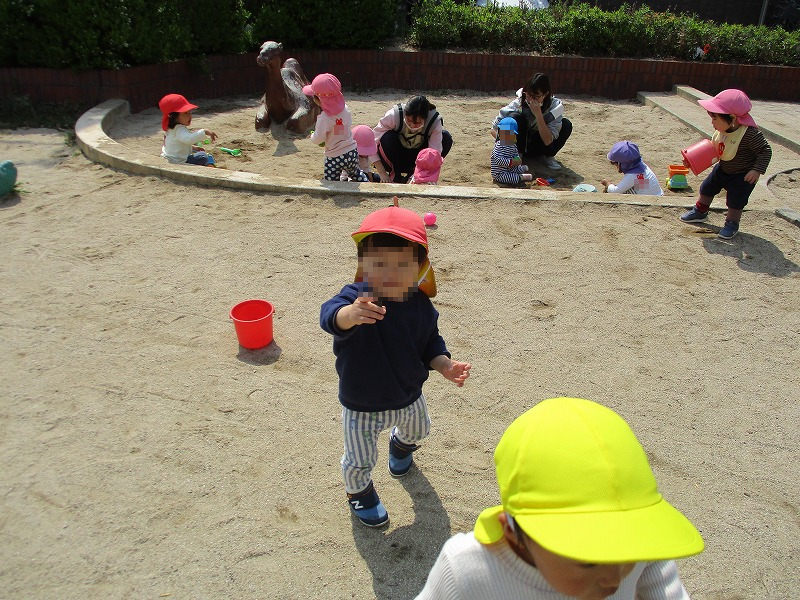 新入園児ちゃんは先生にすがりついて離れません(笑)。