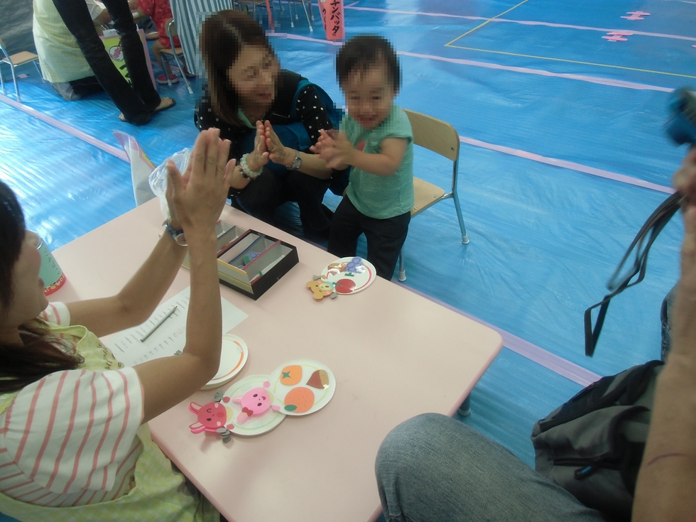 「くだものどーぞ」では上手くできた子天使ちゃんが最高の笑顔を見せてくれています(^0^)。(写真)