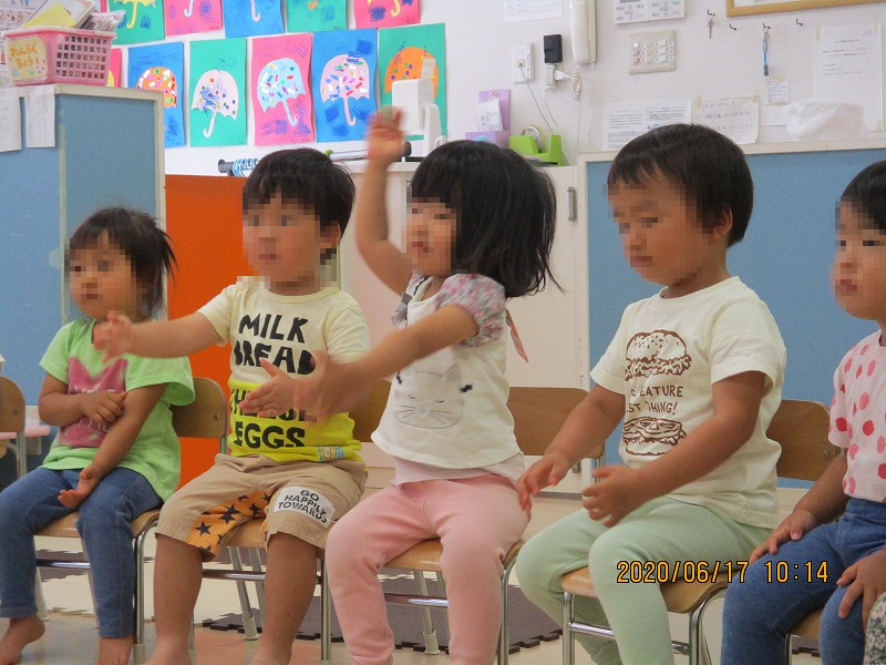 ウェリナの英会話はECC幼児英会話教室の先生に来ていただく「英会話プログラム」とウェリナナーサリースクール所属のカナダ人ハーフのD先生の行なう「英会話サークル」の2つの英会話保育を行っています。写真は今週の「英会話サークル」の一場面。子供たち楽しんでレッスンに参加出来ています(^-^)。