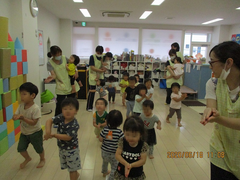 写真はリトミック、みんなでお魚さんにへんし〜ん♪下の写真は豚の丸焼きとサーキット。来週もたくさん遊んでたくさん経験しようね〜。