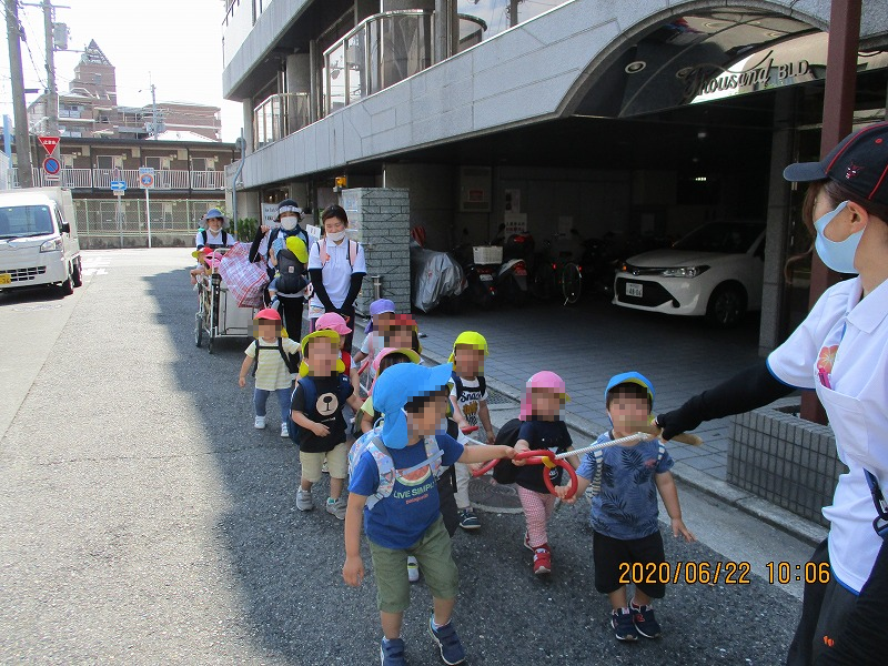 この日は子供たちの足で歩いて20分の椀田公園に【小遠足】に出かけました(^o^)。「出発します♪」「エイエイオー♪」。