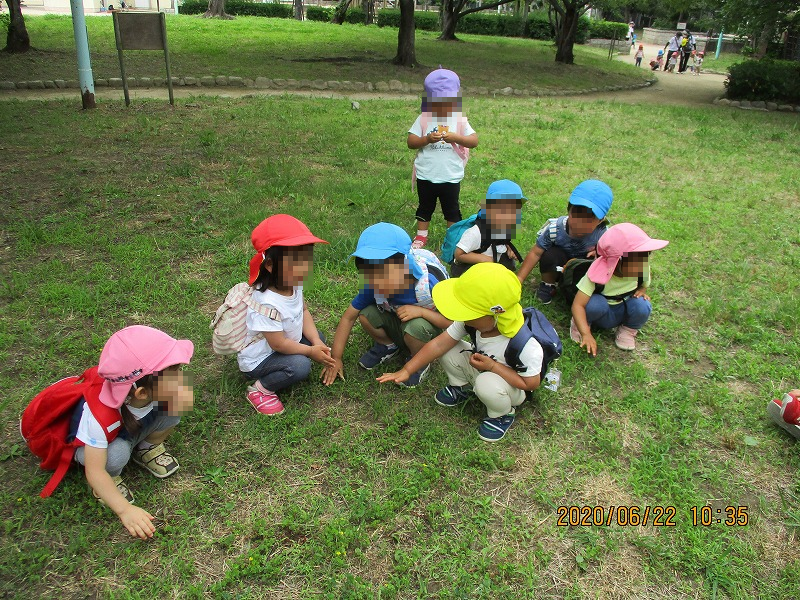 芝生では小さなお花をナデナデする子ども達、優しさは強さにつながります(^-^)。