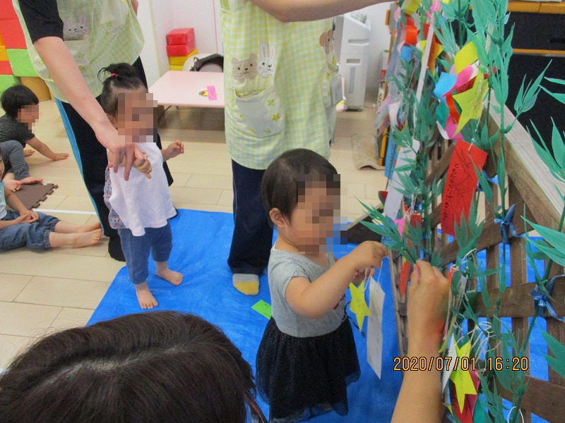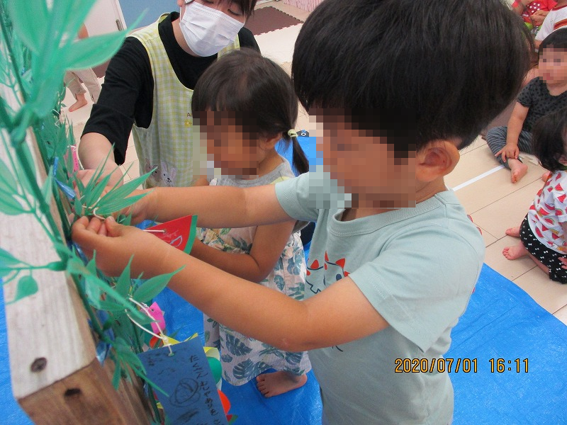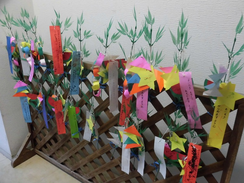 自分達で作った星やスイカや短冊など、飾りつけにも気持ちが入ります。