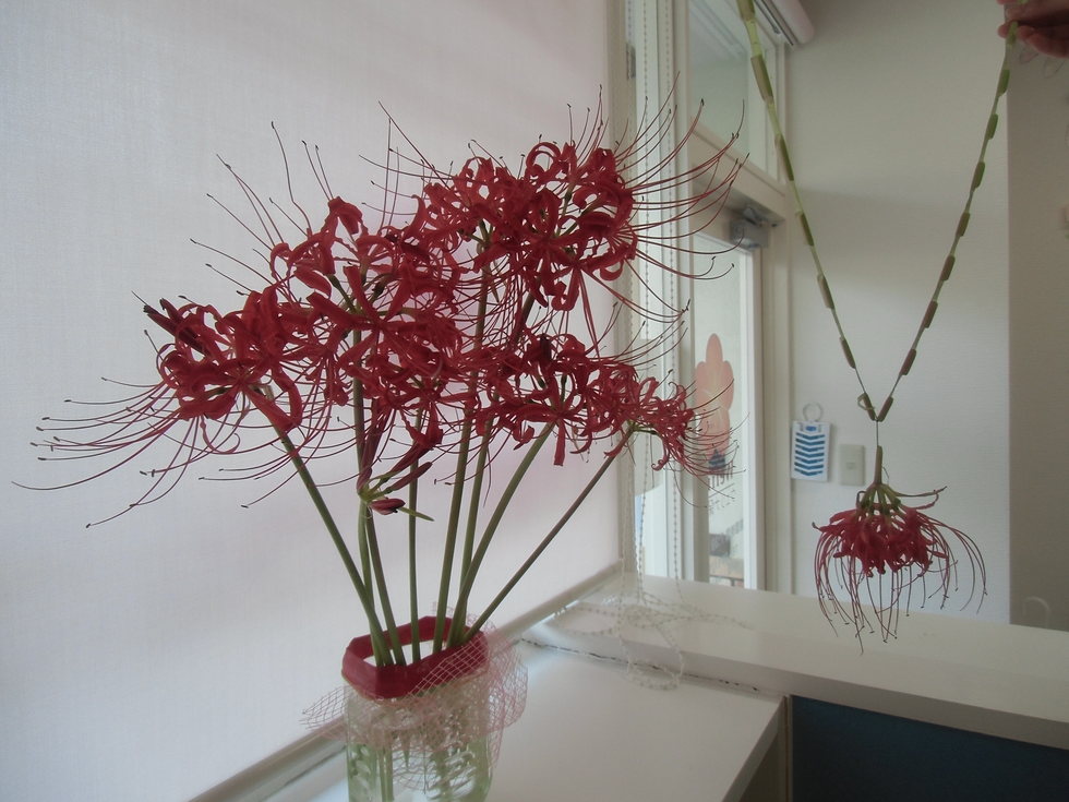 写真は彼岸花と彼岸花で作ったネックレス(^-^)