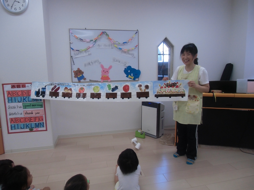 音楽に合わせて子天使ちゃん達の夢を乗せた果物列車が動き出します。みんなのりのり大喜び!