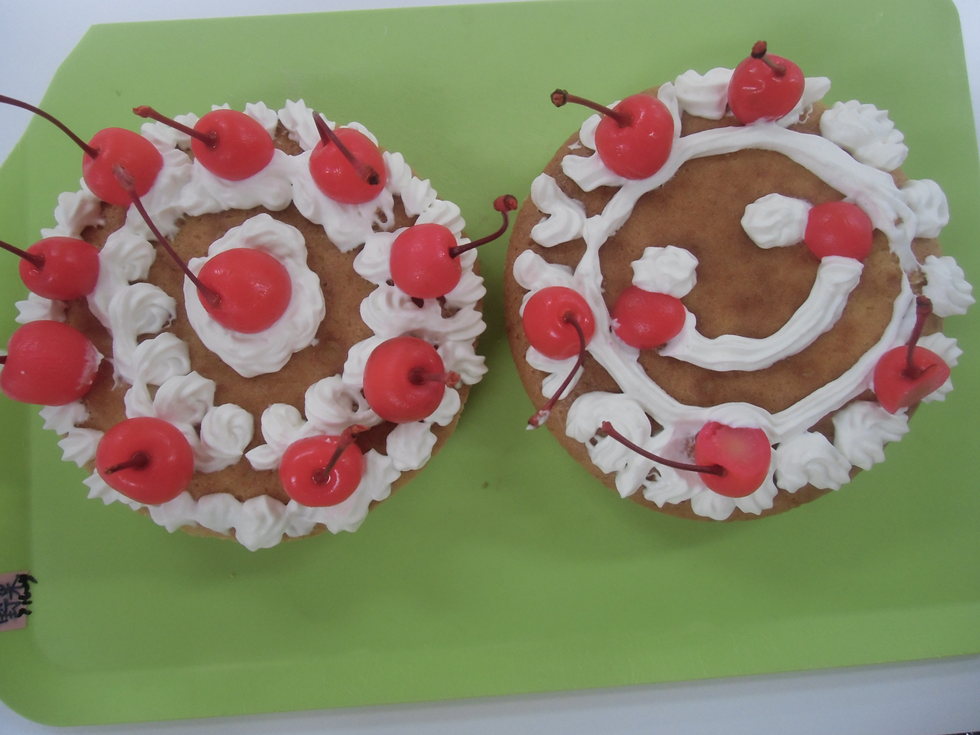 かくし芸のあとはこちらも恒例、給食士さんの手作りケーキ。今日はチェリーの生クリームケーキです(^-^)。