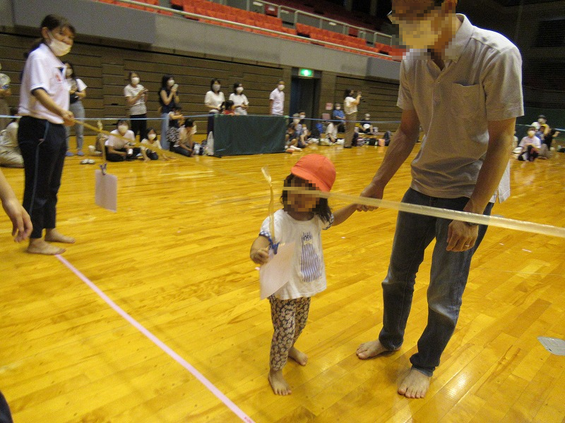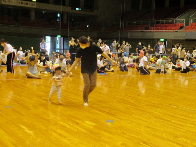 お次は親子競技。とった札に書かれている指示に従います。「お子さんを抱っこしてスクワット3回」とか(笑)・・・お父さん、お母さん、ごめんなさい!