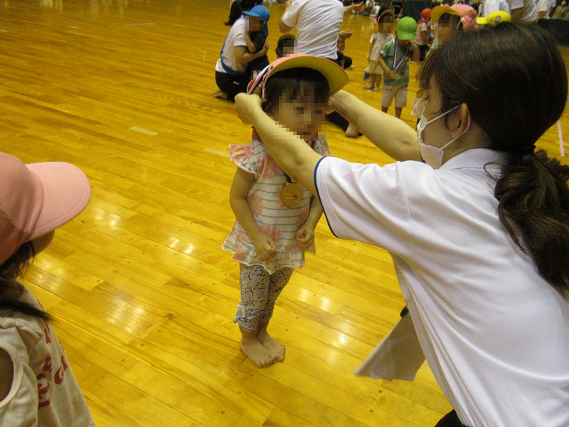 ウェリナ保育園のみんなすごく頑張ったよ!だから記念メダルを贈呈します。先生にメダルをかけてもらった子ども達、どことなく誇らしそうです。