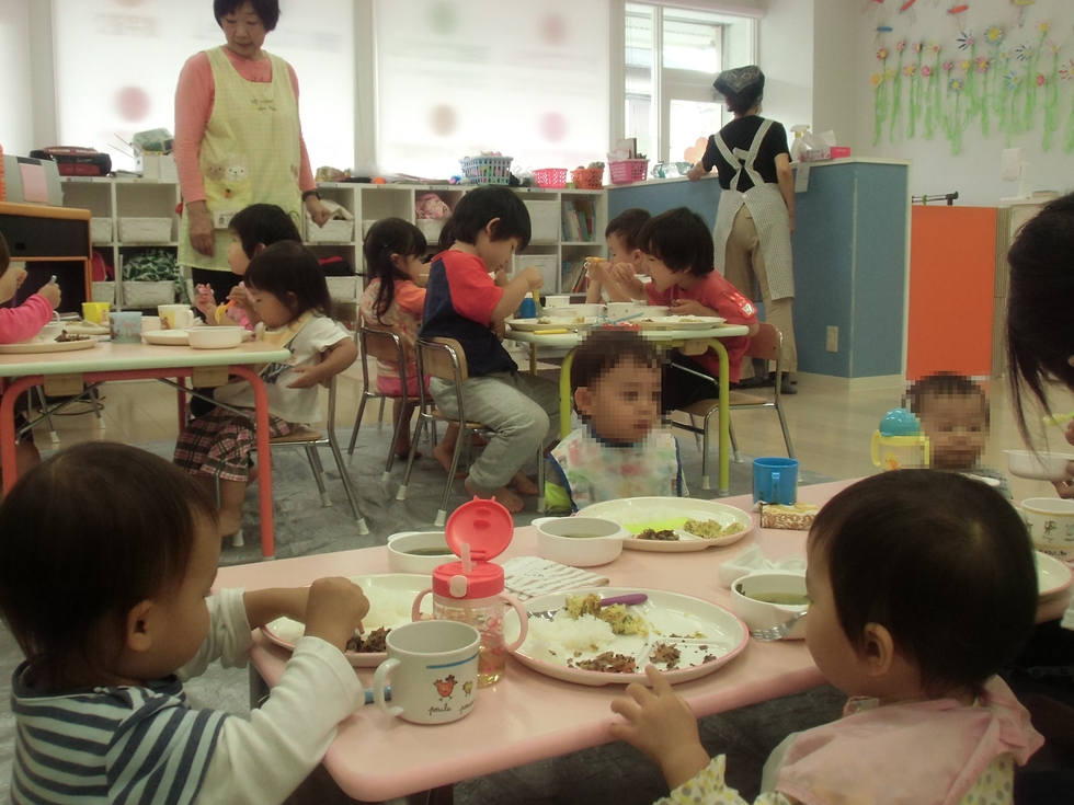 プロによる手料理、これが子天使ちゃん達には美味しいみたい、今日もおかわり続出なんです(^-^)。(園長には少し薄味なんですが・笑)。